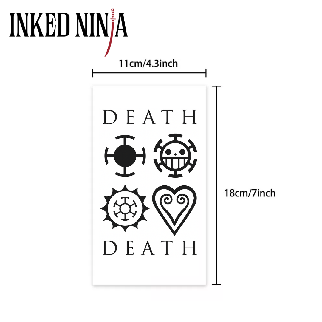 A bold set of iconic symbols drawn from the darker side of One Piece lore. Featuring Law's Heart Pirates emblem, the unmistakable Death insignia, and motifs tied to the underground and beyond, this set is clean, striking, and full of edge. Perfect for anyone who resonates with rebellion, legacy, and the kind of pain that shapes purpose.